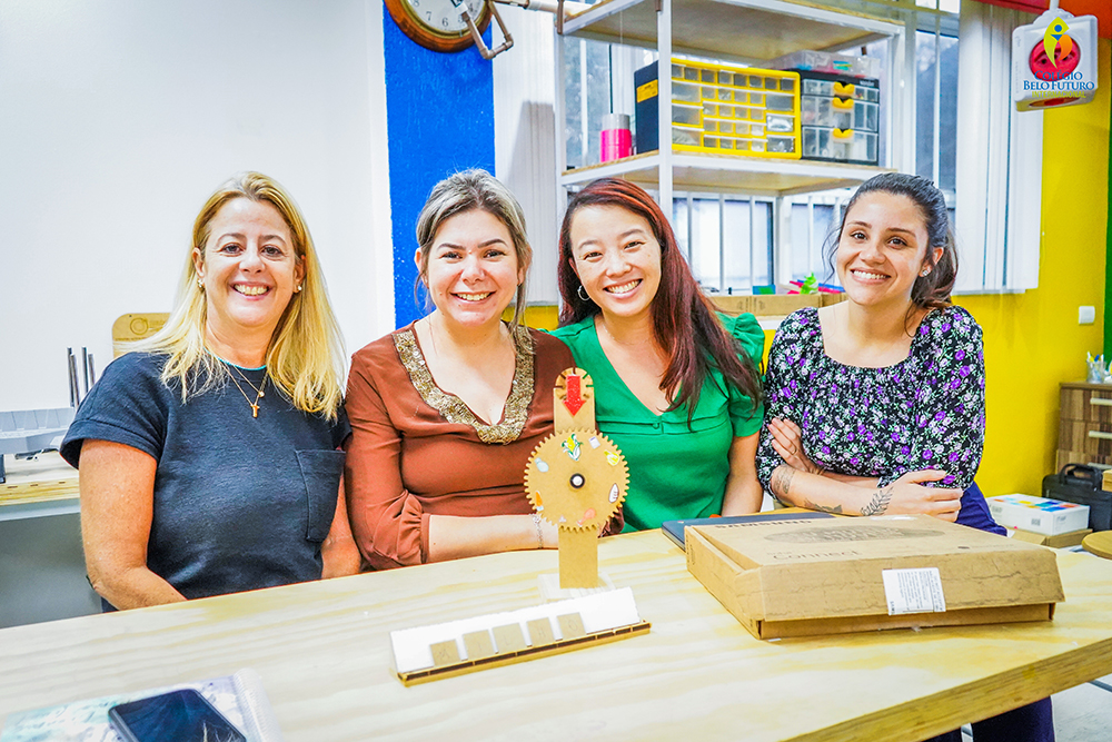 Além de assistirem a uma palestra super completa sobre a metodologia, eles colocaram a “mão na massa” e desenvolveram projetos incríveis com materiais recicláveis!