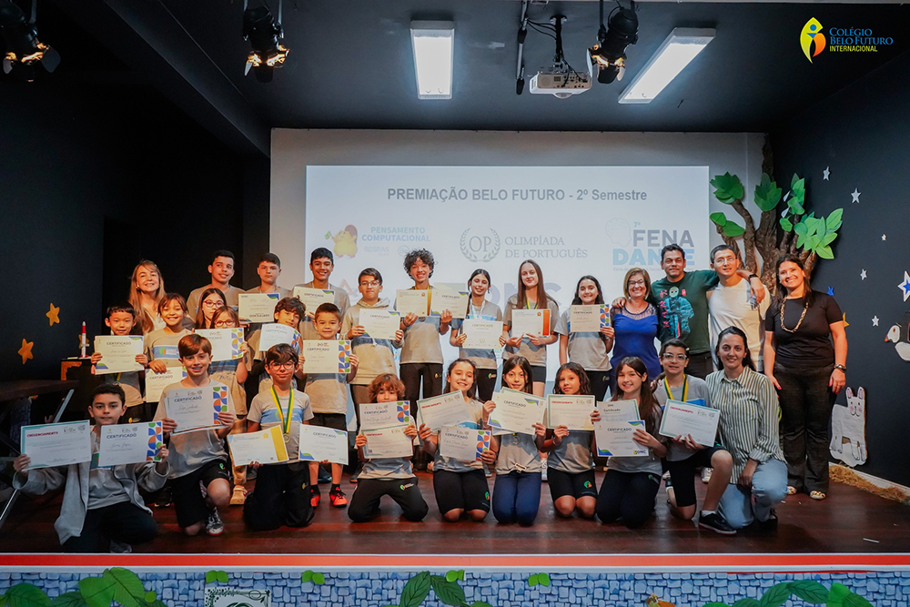Celebramos as conquistas e vitórias dos nossos alunos em uma cerimônia de entrega dos certificados e medalhas da OBMEP, OBLI (Olimpíada Brasileira de Língua Inglesa), Olimpíada Canguru de Matemática e da Olimpíada Brasileira de Robótica!🏆