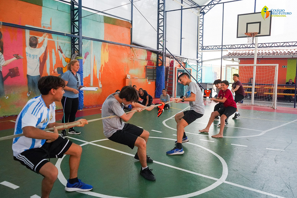 Os alunos dos Anos Finais participaram de gincanas que promoveram muita alegria, descontração e união entre as turmas.