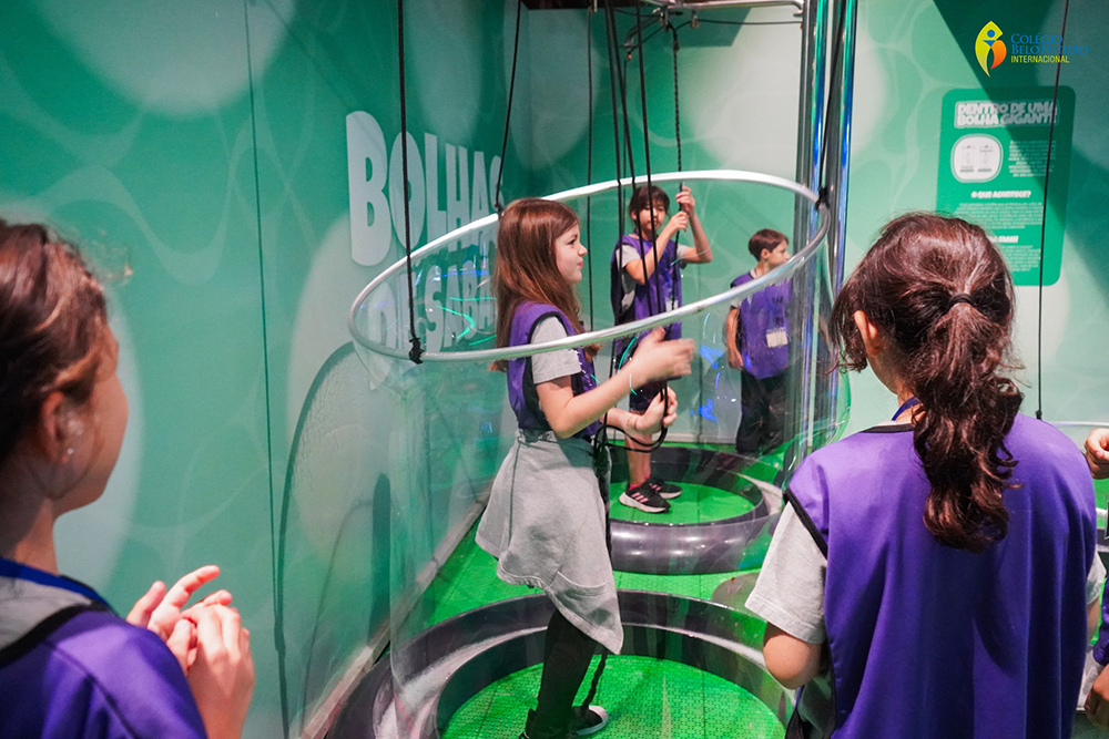 Os alunos ficaram encantados com as brincadeiras interativas cheias de ciência e ludicidade!