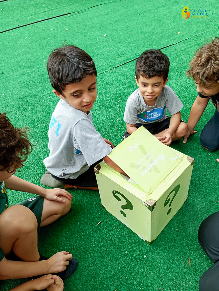 Aguçando os sentidos! As crianças participaram da atividade lúdica da “Caixa Sensorial”.