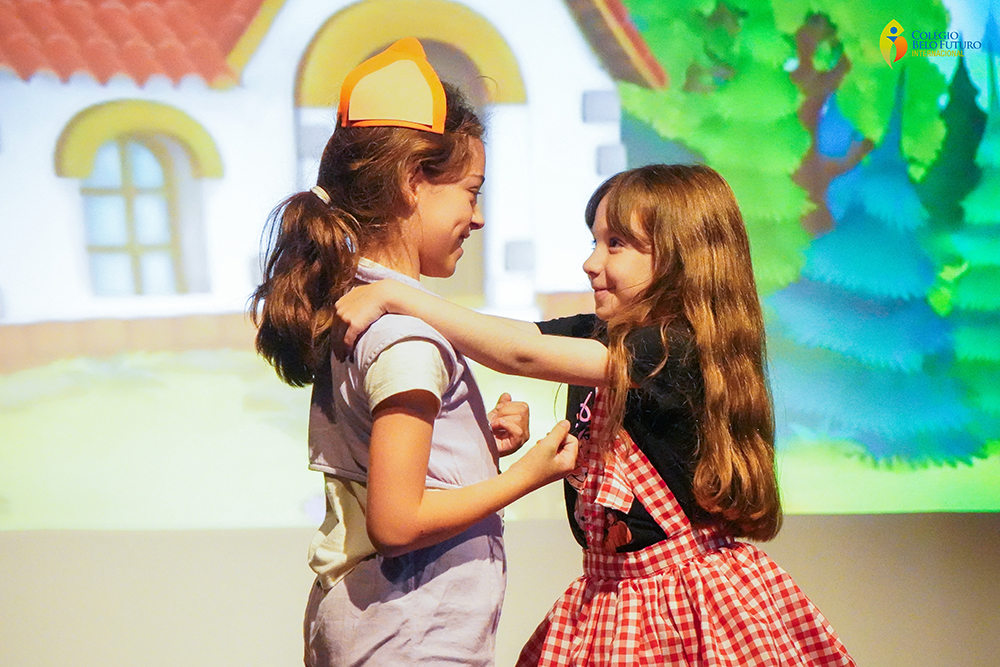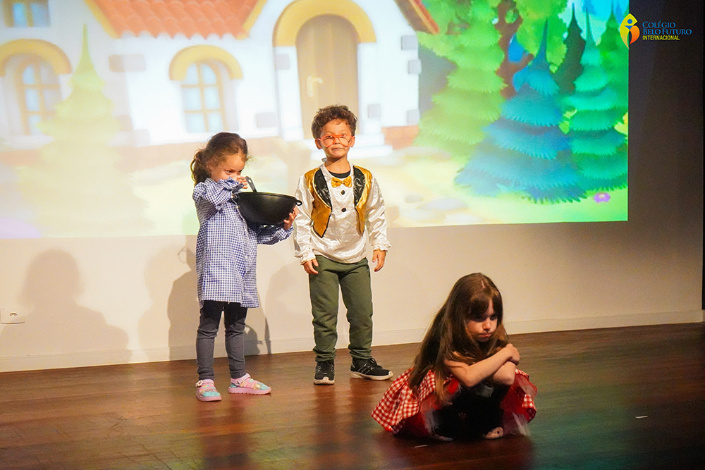 Desta vez as crianças entraram no mundo do “faz de conta” e encenaram personagens e situações durante a atividade de teatro lúdico.