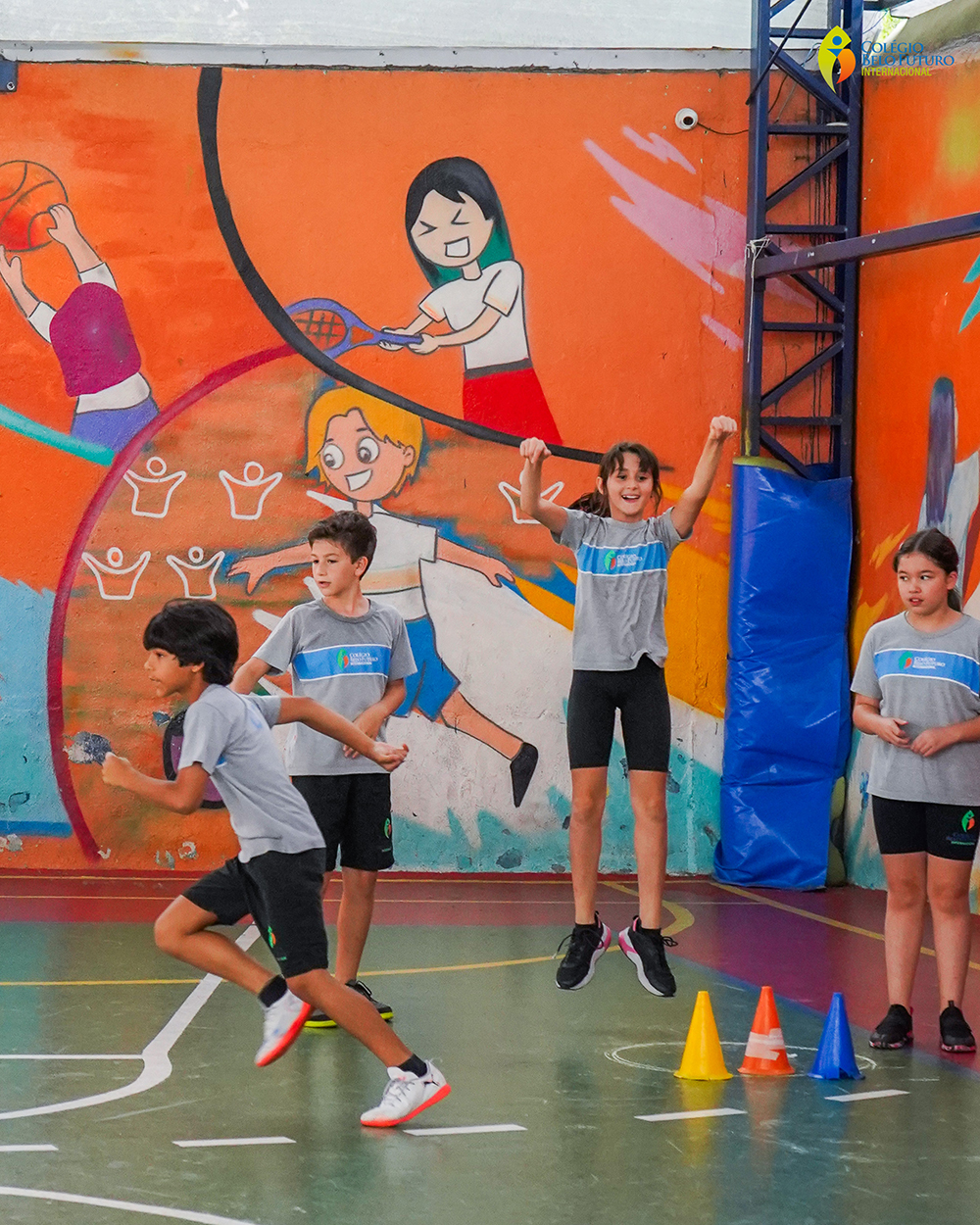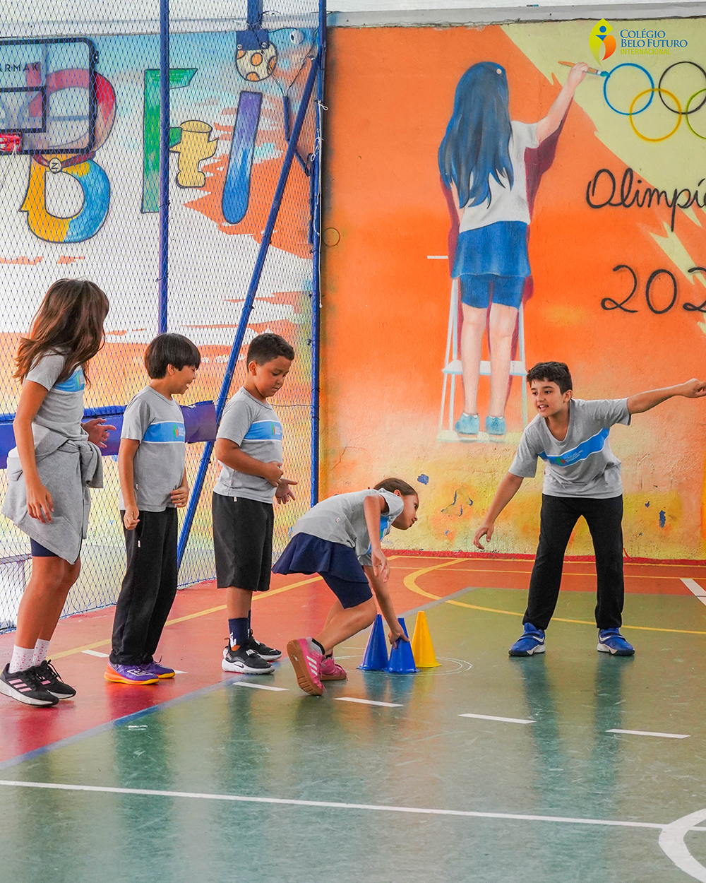 A turma do 5º ano participou de uma gincana dos cones durante a aula de Educação Física.